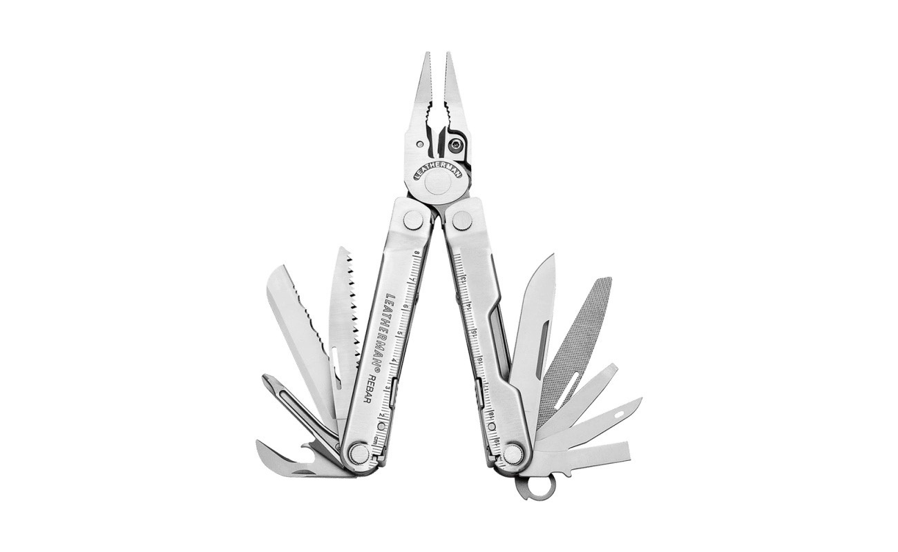 Мультитул Leatherman Rebar, 17 функций, нейлоновый чехол считается облегченной версией Super Tool 300. Плоскогубцы были взяты из этой модели, они рассчитаны на серьезную нагрузку, как и съемные кусачки из стали 154СМ, которые можно использовать для стальных тросов. Со временем их можно будет снять, наточить или заменить на новую деталь.