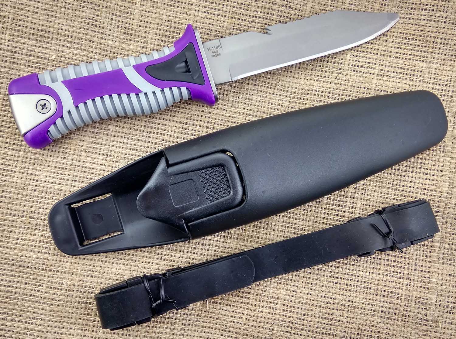 Описание Нож подводный с пластиковыми ножнами на бедро Дайвер, H-118SТипТуристический ножДлина клинка (мм)122ПроизводительНожемирВес (гр)180Марка стали440Общая длина (мм)233Толщина обуха (мм)3,5Твердость стали55-57Материал рукоятипластик