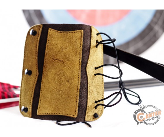 Материал изготовления - натуральная замша. Удобно фиксируется на предплечье лучника с помощью эластичной шнуровки. Защищает руку стрелка от соприкосновения с тетивой во время выстрела. Совмещает практичность и историческую эстетику.