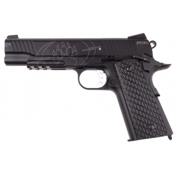 Калибр, мм: 4.5 мм Скорость выстрела, м/с: 95 м/с Емкость магазина: 18 BB Вес (кг): 930 г Размер: длина: 220 мм Источник энергии: баллон СО2, 12 г Тип пуль: стальные шарики ВВ Материал: металл Мощность: 1,6 Дж Блоубэк: есть Тип ствола: гладкий Производитель: Swiss Arms Пневматический пистолет Swiss Arms BW1911 R2 представляет собой копию пистолета Colt M1911 Rail Gun являющейся продолжением модификации знаменитого Colt M1911 конструкции Джона Браунинга.