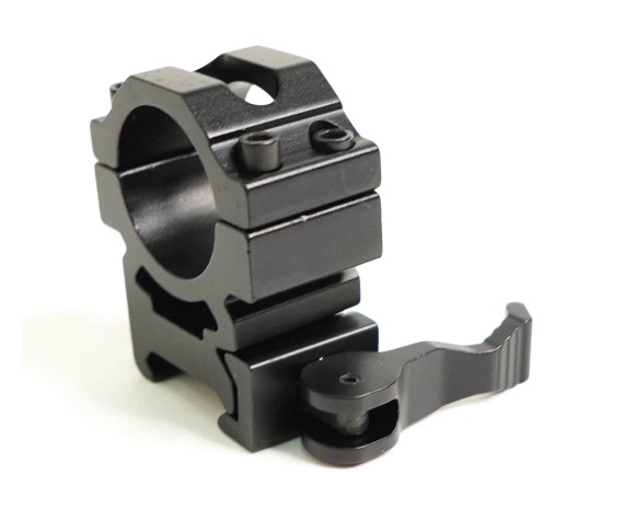 Кольца высокое для размещения оптических прицельных приспособлений на планках Пикатинни и Вивер. Обладает быстросъемным креплением для прицелов, фонарей, боуфишинга.