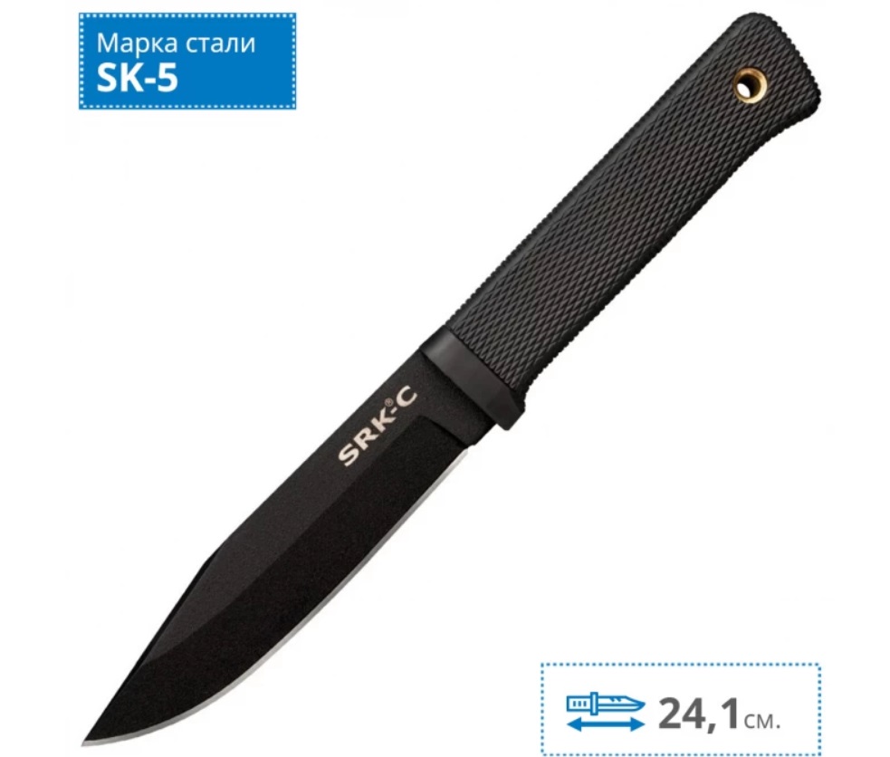 CS_49LCKD SRK Compact - нож с фикс.клинком, сталь SK-5, чёрное покрытие Black Tuff-Ex