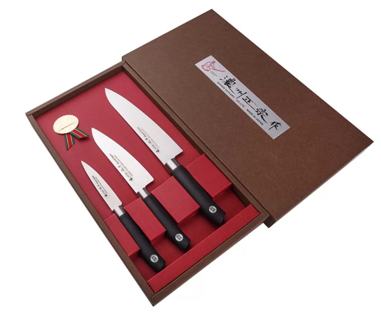 Подарочный набор Satake Swordsmith из 3 ножей (Овощной 100мм+ Универсальный 135мм+ Шеф 180мм) в подарочной коробке, HG83