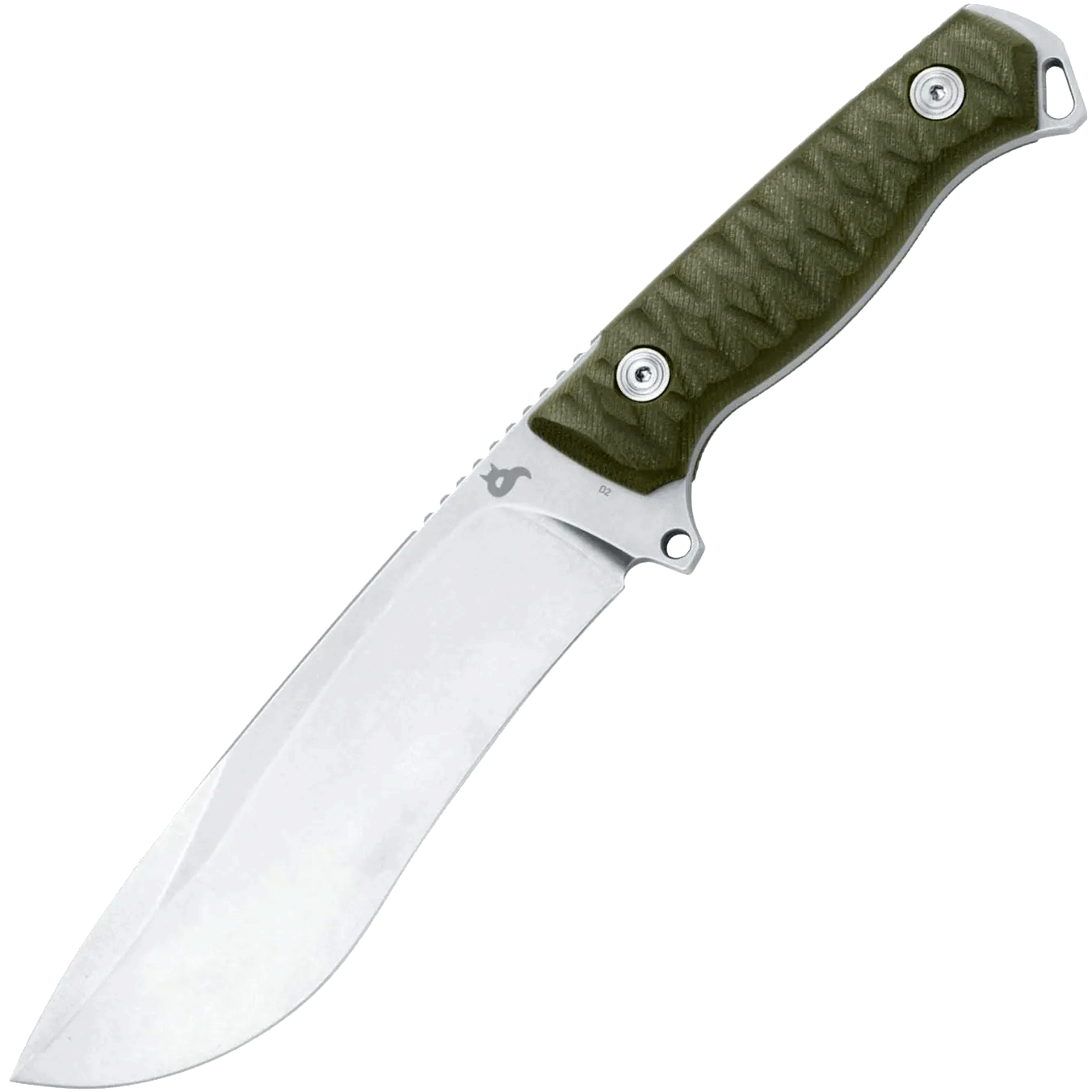 FBF-757 OD GOLEM - нож с фикс.клинком, рукоять зеленая G10, клинок D2 стоунвош, ножны кайдекс
