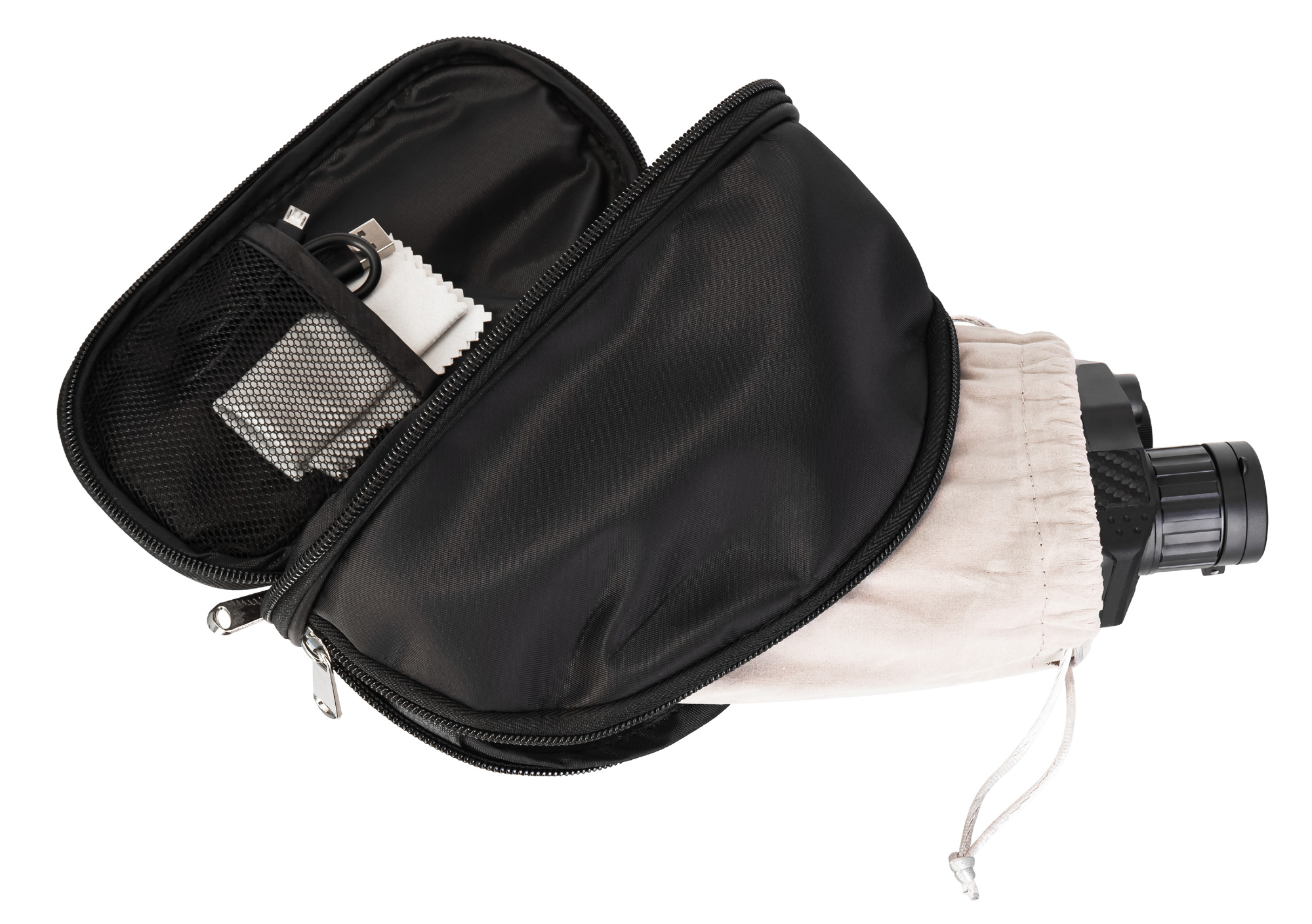 Одно из конструктивных преимуществ модели Levenhuk Atom Digital DNM100 – выпуклая линза окуляра, за счет которой встроенный дисплей прибора приближается, и картинка демонстрируется более крупно. Кроме того, объектив здесь больше, чем у монокуляра Levenhuk Atom Digital DNM50 и бинокля Levenhuk Atom Digital DNB100: его диаметр составляет 35 миллиметров, что позволяет оптике собирать больше света. Также модель оснащена более яркой инфракрасной подсветкой для ночных наблюдений. Все это в совокупности помогает оптико-электронной системе формировать яркое, отчетливое и информативное изображение, которое удовлетворит самым высоким требованиям.