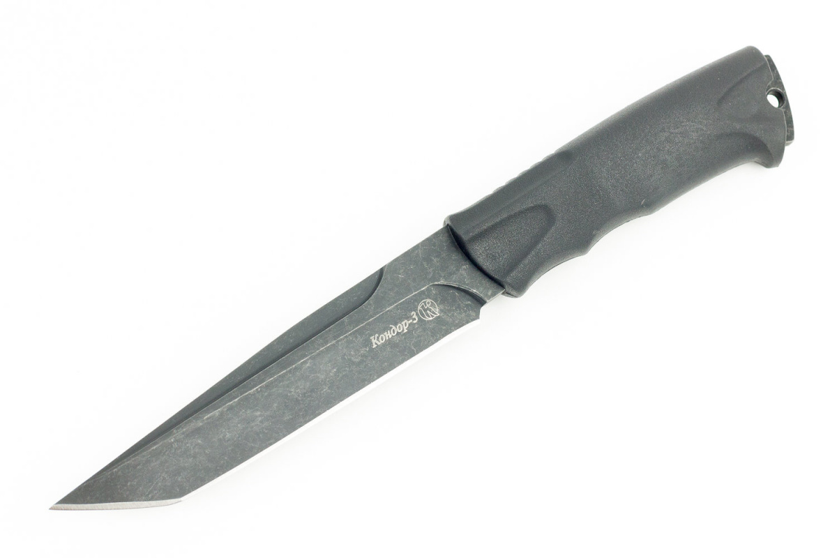 Нож Кондор-3 является ярким представителем группы ножей, выполненных в стиле «милитари». Геометрия клинка типа “танто”, выступающее ребро жесткости на голомени клинка. Благодаря форме клинка, высоким спускам и вогнутой полуторной заточкой лезвия, Кондор-3 имеет хорошие свойства кола и реза.
