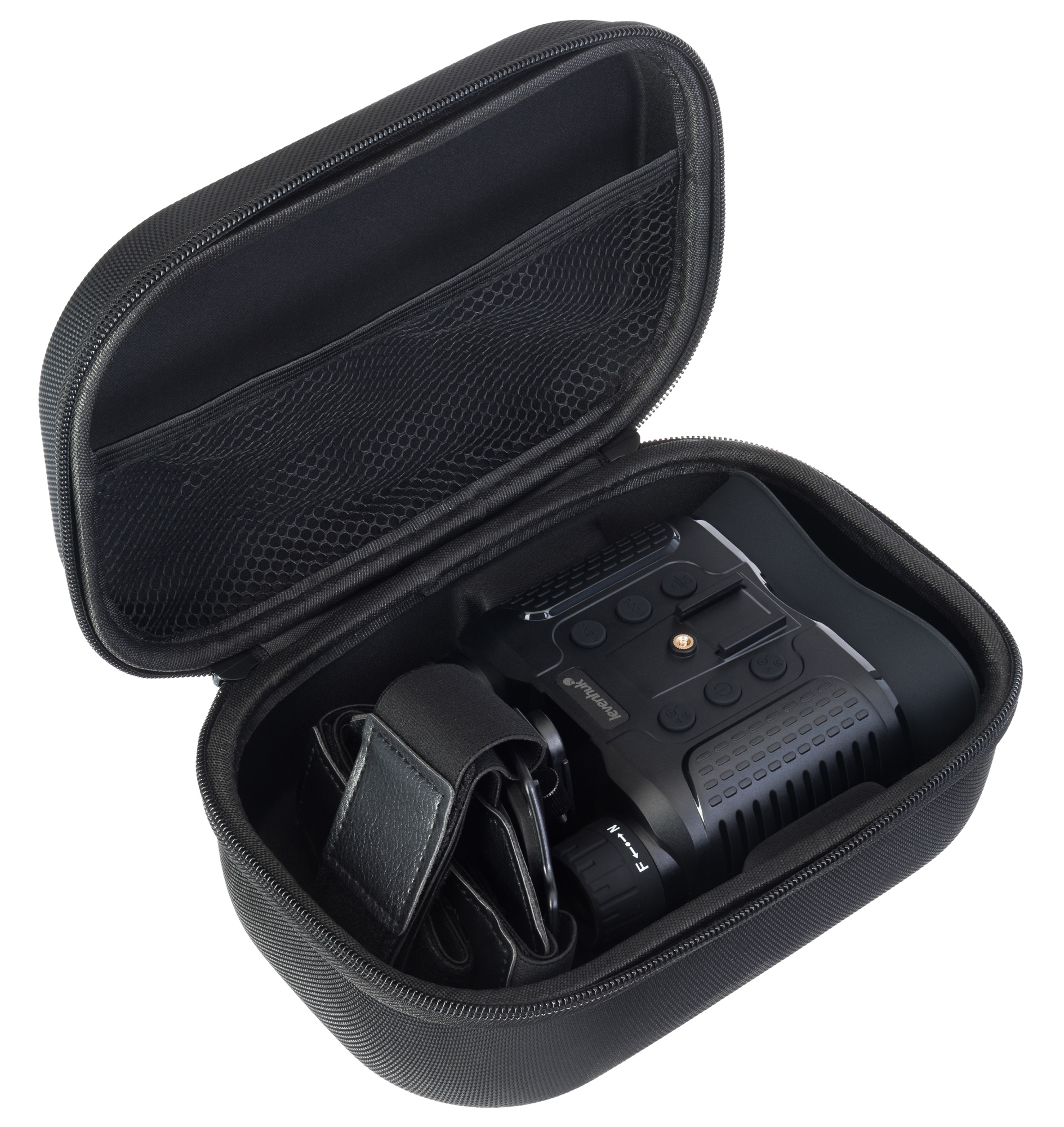 Бинокль позволяет не только вести наблюдения, но и сохранять увиденное в формате фото и видео. Доступна опция воспроизведения, позволяющая сразу же просмотреть отснятые кадры на дисплее с удобным соотношением сторон 4:3. Съемка ведется в высоком разрешении: для фото это 4000x3000 пикс, для видео – 1920x1080 пикс при частоте 30 кадров в секунду. Видеоролики получаются плавными и информативными. Материалы сохраняются на карту памяти объемом до 32 ГБ (карта уже есть в комплекте). Удобно, что съемку можно вести, держа бинокль в руках или используя крепление на голову, а также со штатива: в корпусе есть крепление 1/4".