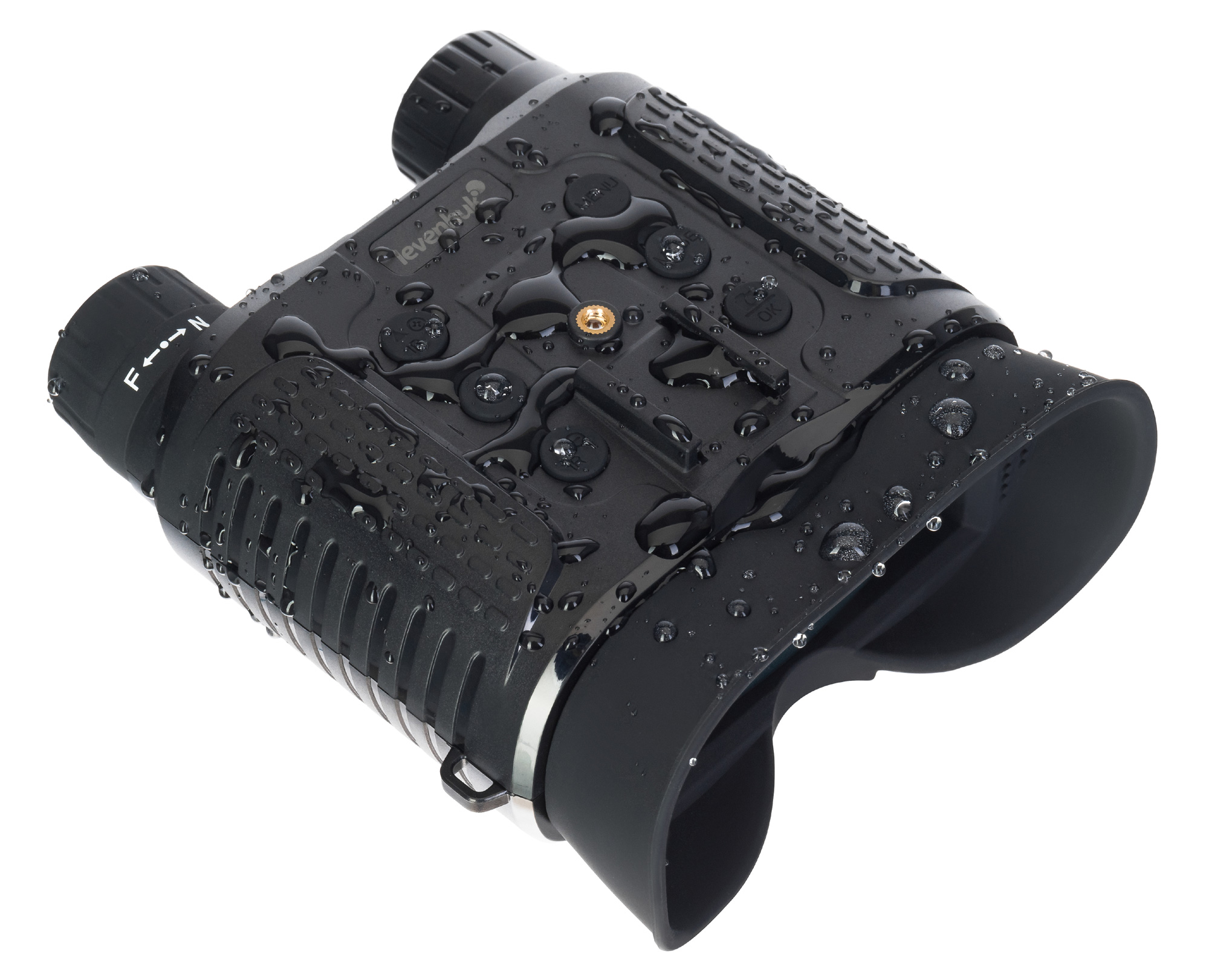 Еще одно достоинство бинокля Levenhuk Halo 13X Helmet – прочный корпус с защитой от брызг воды, рассчитанный на применение в широком температурном диапазоне. Работает прибор от сменного литиевого аккумулятора, одного заряда хватает на 3,5–8 часов непрерывной работы. Чем менее интенсивно используется ИК-осветитель, тем дольше проработает прибор. Функция автоотключения помогает экономить заряд – можно настроить ее на 1, 3, 5 или 10 минут по желанию пользователя. Эргономичное расположение кнопок управления дает простой и быстрый доступ ко всему функционалу прибора.