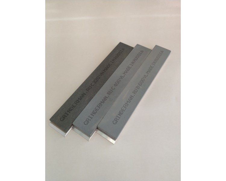 Набор 3 (три) камня GRINDERMAN 25х6х152мм из карбида кремния (F220, F400, F600) на бланках