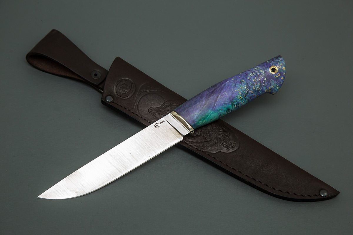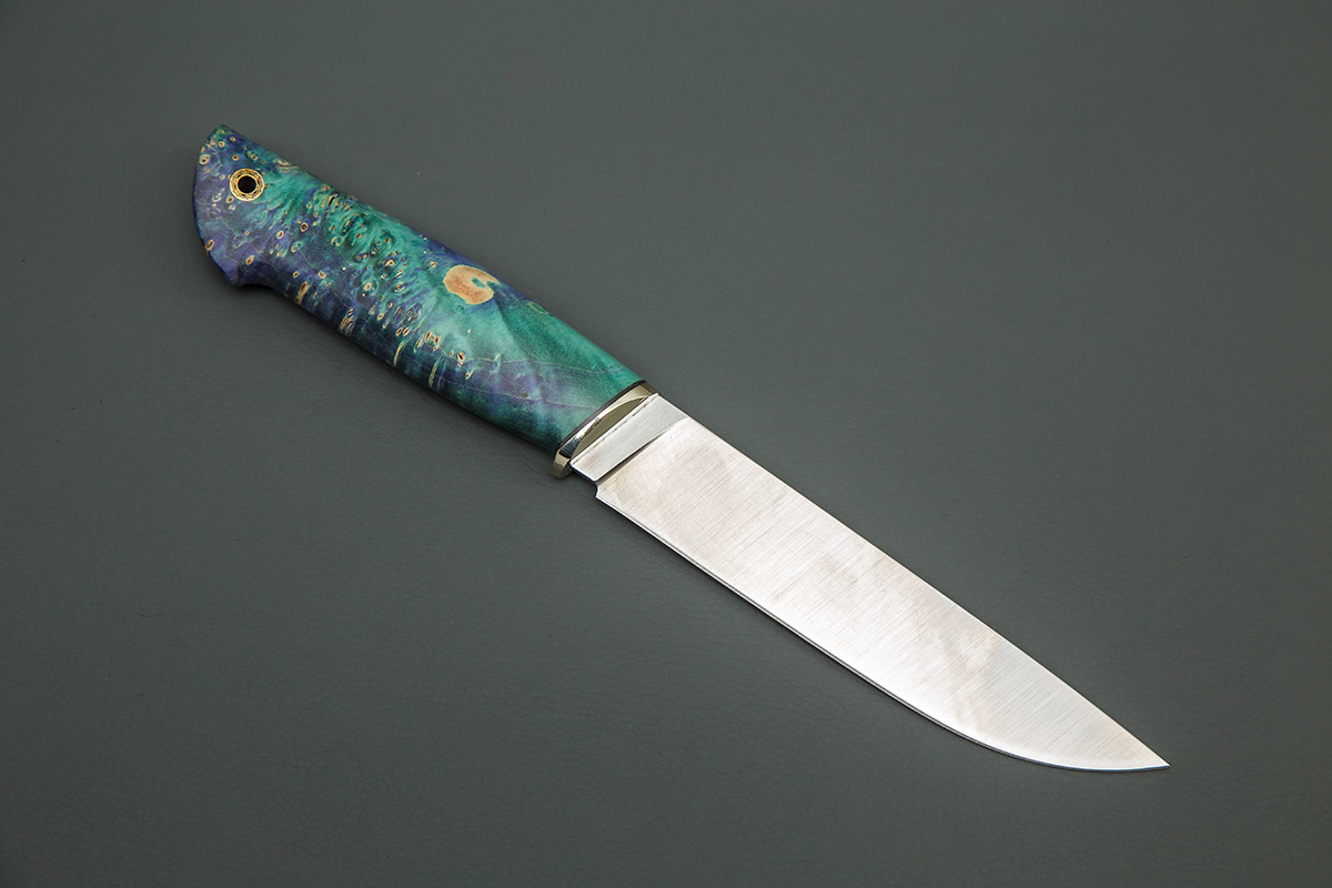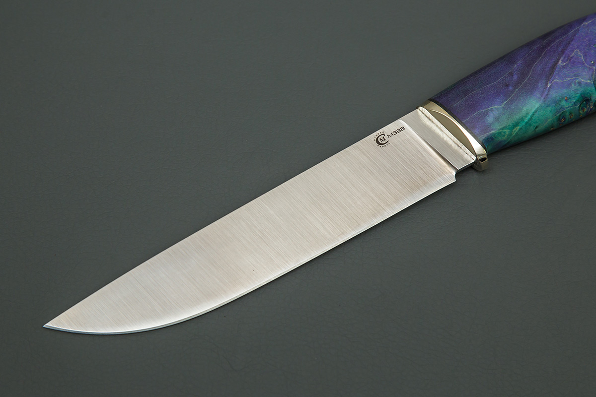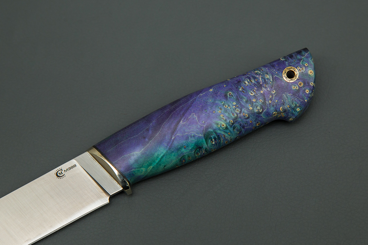 Нож из стали M398 «Пантера», рукоять притин мельхиор, стабилизированный кап клена