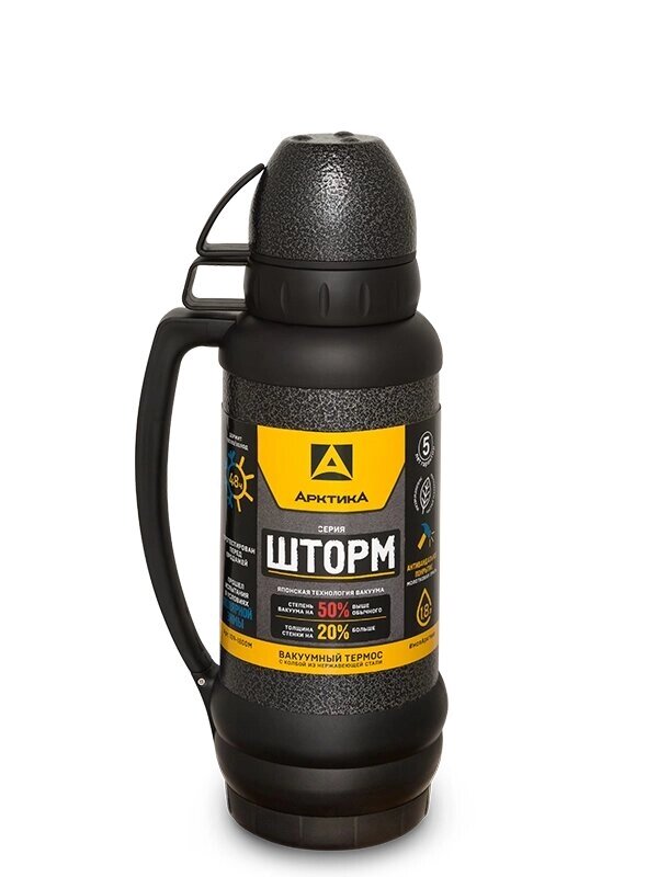 Термос бытовой, вакуумный (для напитков), тм "Арктика", 1800 мл, арт. 109-1800М (чёрный)