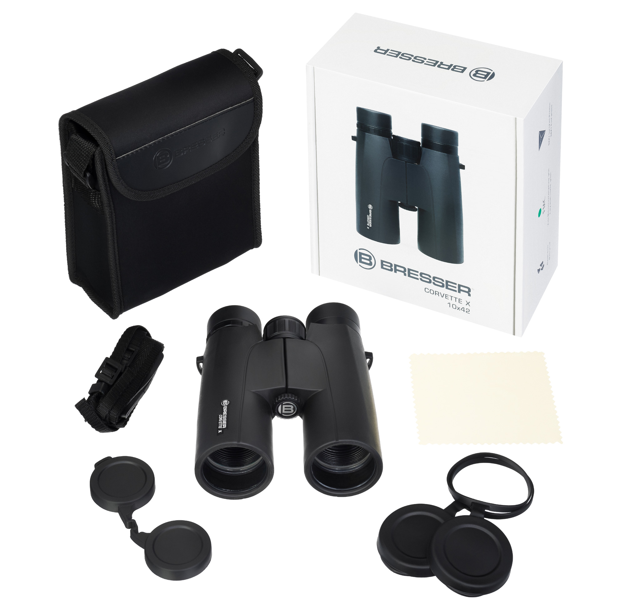 Бинокль Bresser Corvette X 10x42 WP – водозащищенный бинокль для полевых наблюдений. Отличный выбор для охоты, похода, рыбалки или охраны больших территорий. В нем гармонично сочетаются высокая кратность, довольно широкое поле зрения и отличная светосила, позволяющая четко различать мелкие детали даже в сумерках. Бинокль имеет эргономичную конструкцию, поэтому удобно лежит в руках, но для получения максимально стабильной картинки может быть установлен на стандартный штатив.