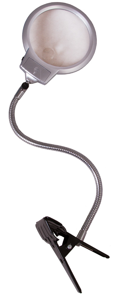 Благодаря гибкому штативу лупу легко расположить прямо над нужным предметом. Линза бифокальная: по большому диаметру она дает увеличение в 2 раза, по малому – в 5 раз. В основании линзы размещены два светодиода. Они дают ровный и яркий свет и позволяют пользоваться лупой даже в слабо освещенных помещениях.