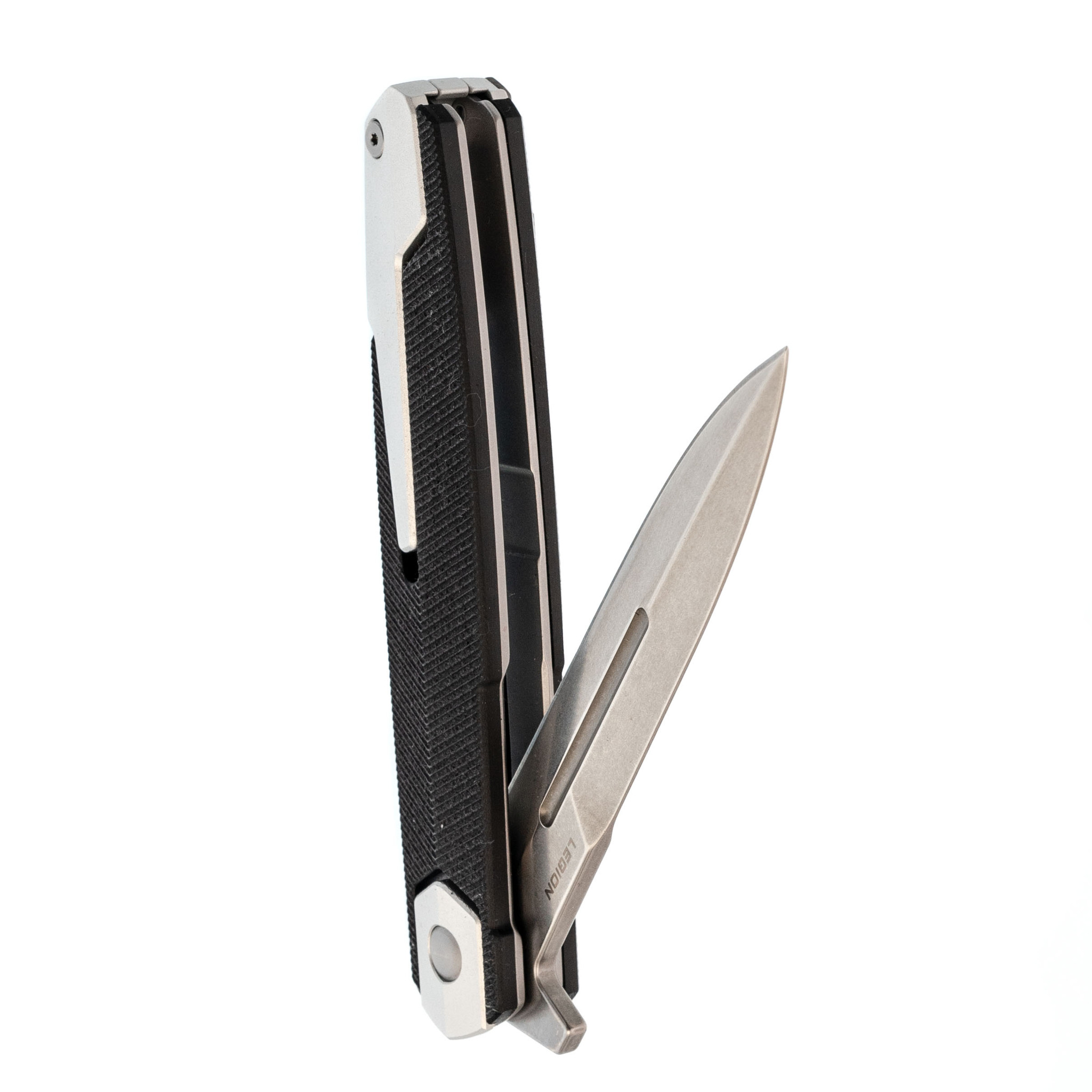 Mr.Blade Legion (арт. MB378-D2SW/BK) – это инструмент, который сочетает в себе космический дизайн и функциональные возможности, готовый к выполнению повседневных задач. Его клинок изготовлен из стали D2, известной своей твердостью и долгим удержанием режущей кромки. Эта сталь обеспечивает агрессивный рез и исключительную прочность, хотя требует небольшого ухода, чтобы избежать питтинга. Лезвие имеет кинжальную форму, что делает этот нож идеальным для проникающих действий. Для выполнения основных городских задач, таких как открытие упаковок, он также подходит превосходно.