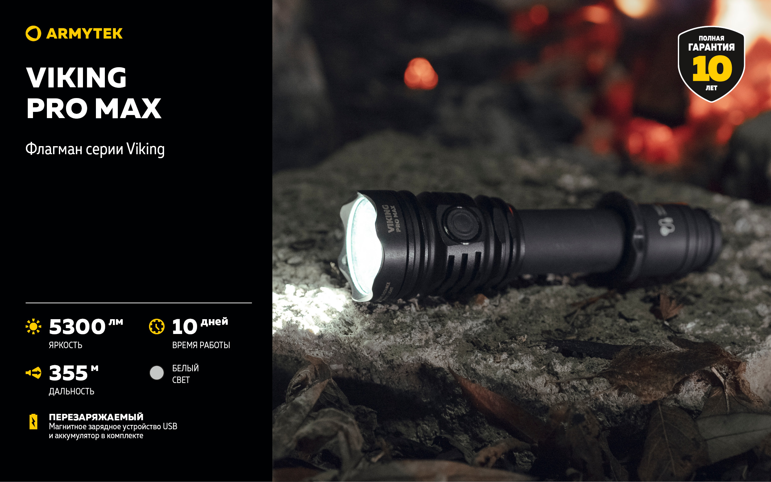 Фонарь Armytek Viking Pro Max Magnet USB Белый
