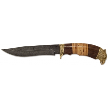 ГЕПАРД (4192)д Нож нескладной дамаск венге, береста литьё латунь голова / Ножемир Россия