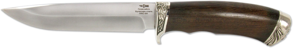 КЛЁН (2308)б Нож нескладной булат венге упор и тыльник худ. литьё мельхиор