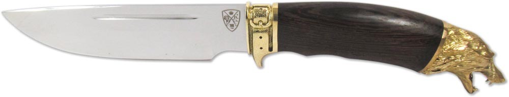 5206 Нож нескладной кованый венге упор и голова худ. литьё латунь "Глухарь" серия ОХОТА с долом / Ножемир Россия/СЕРИЯ