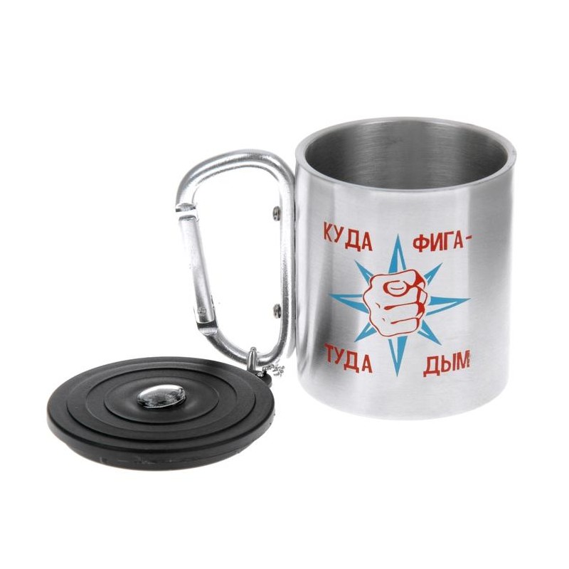 Термокружка с ручкой-карабином и компасом "Куда фига - туда дым" 200 мл