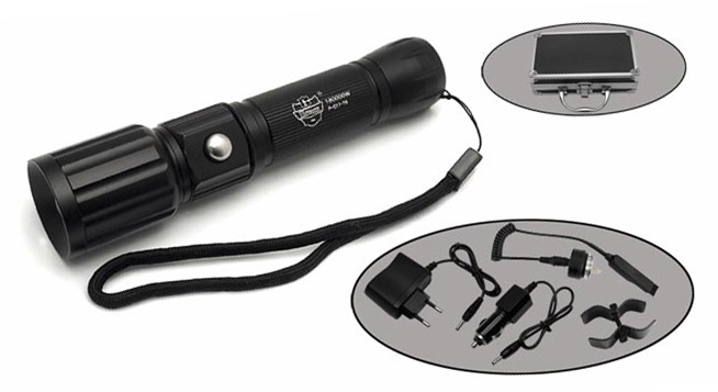 Комплектация: зарядное устройство, автомобильный адаптер, аккумулятор, выносная кнопка, оружейное крепление