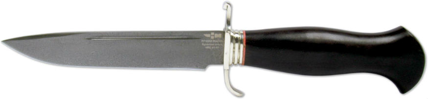 НКВД (0145)б Нож охотничий НКВД чёрный булат (травление) граб, фибра, долы гарда художественное литьё мельхиор