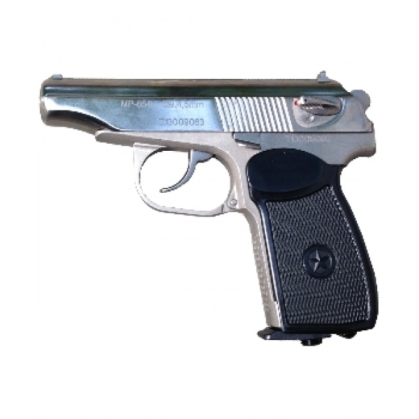 - Пистолет МР 654К-24 выполнен из легированной отполированной стали без воронения. Благодаря этому он имеет высокий показатель коррозионной стойкости и нестандартный, стильный внешний вид.