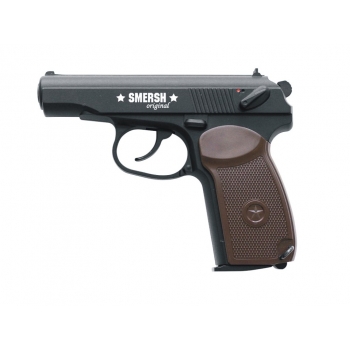 SMERSH H50 – одна из самых точных копий пистолета Макарова 1949 года (аналог пневматического пистолета макарова мр 654к), модели, ставшей настоящей легендой. Пневматический аналог пистолета очень прост и легок в обращении и надежен.